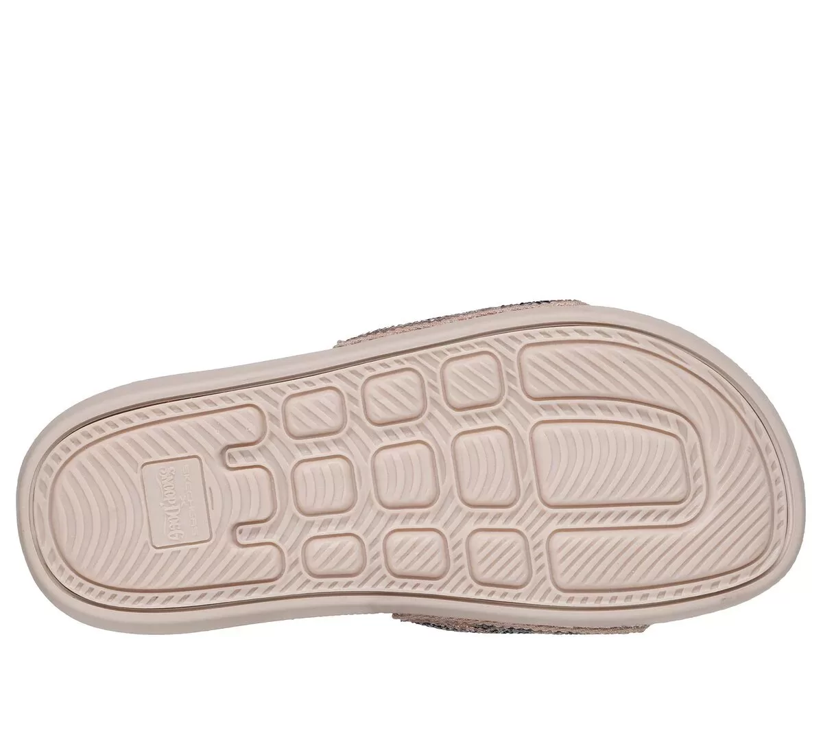 Snoopify your ‘slides-and-socks’ game in the blinged out Skechers x Snoop Dogg: Low Slider – Cheetalicious. Designed in three stand-out colorways, this single crossband slide features a rhinestone covered synthetic upper in a big cat pattern, plus a contoured Luxe Foam® cushioned footbed.