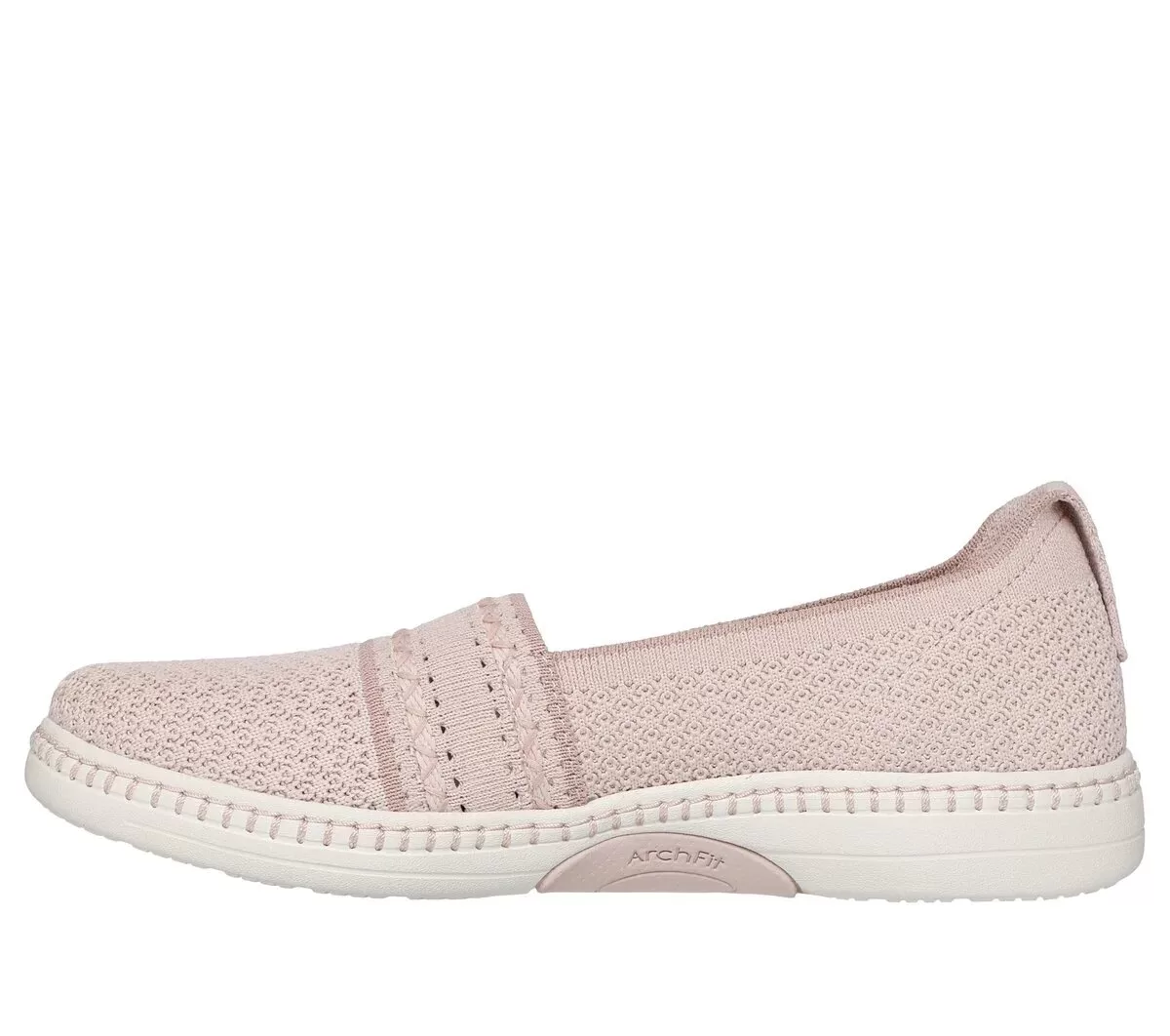 Enjoy walks in long-lasting comfort with Skechers Arch Fit Inspire – Sicily. This Stretch Fit® vegan skimmer has been granted the APMA Seal of Acceptance and features a two-tone engineered knit upper in a laceless fit, lightweight ULTRA GO® cushioning, and a removable Arch Fit® insole.