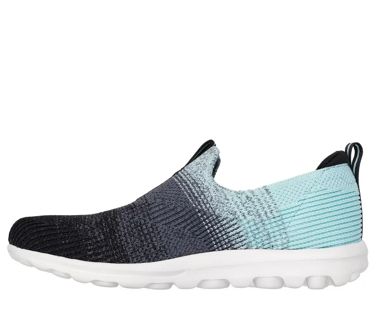 Breeze through your daily walks in easygoing comfort with Skechers GO WALK® Travel – Ibiza. This laceless style features a Stretch Fit® ombre knit upper with a Skechers Goga Mat® Technology insole and lightweight ULTRA GO® cushioning.