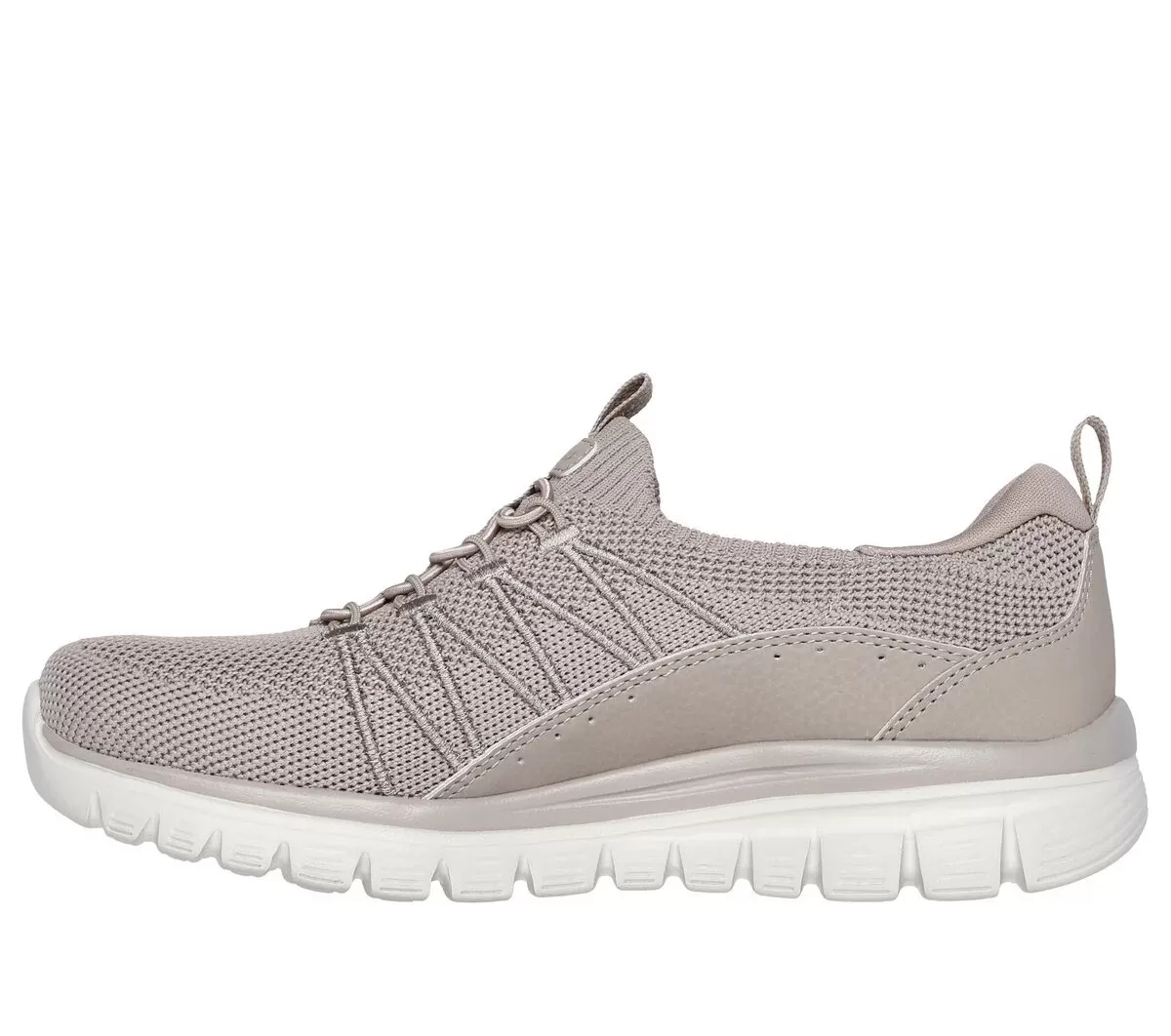 Grace your feet with easy-wearing comfort in Skechers Graceful – Picture Perfect. This stretch-laced vegan style features a Stretch Fit® engineered knit upper with synthetic overlays and a cushioned Skechers Air-Cooled Memory Foam® insole.