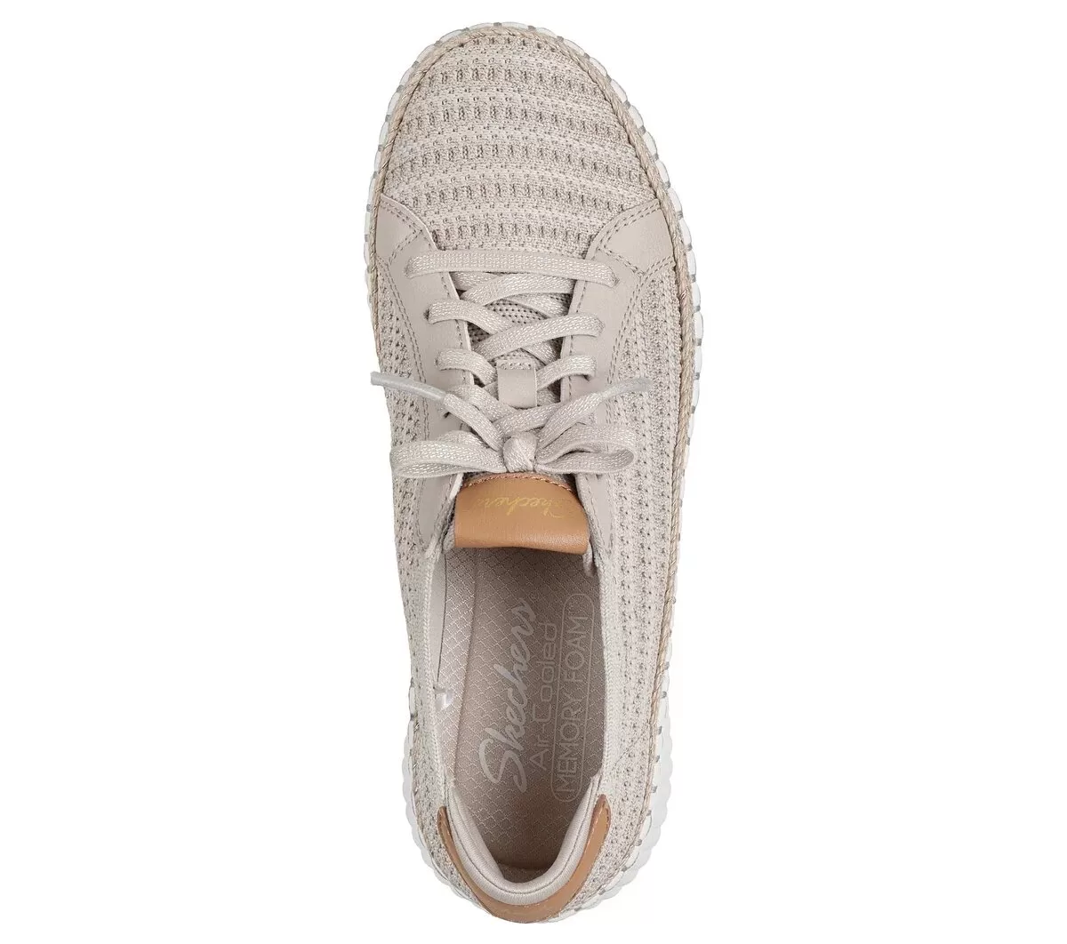 Take a walk on the stylish side in machine-washable comfort with Skechers Wilshire Blvd – Passion Play. This vegan Skechers No Tie Fit® design features a sweater knit upper with faux laces, jute midsole trim, a Comfort Pillow at the heel, and a cushioned Skechers Air-Cooled Memory Foam® insole.